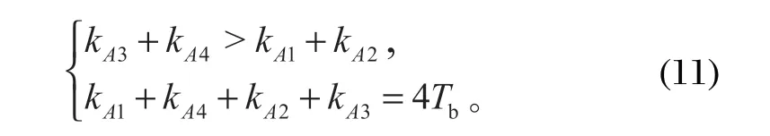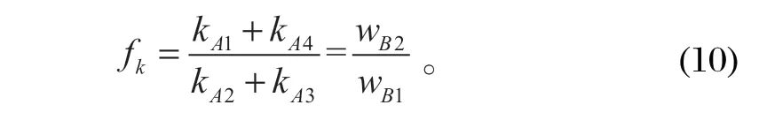 由于 wB1 >wB2,可得 kA2+kA3>kA1+kA4。