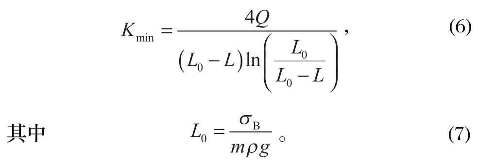 根據(jù)文獻(xiàn) [10-11],罐道繩張緊狀態(tài)和鋼絲繩自重影響剛性系數(shù),繩長(zhǎng)范圍內(nèi)的各點(diǎn)剛性系數(shù)均不同,zui小剛性系數(shù)在罐道繩下端 (0.4~0.5) L 之間。zui小剛性系數(shù)