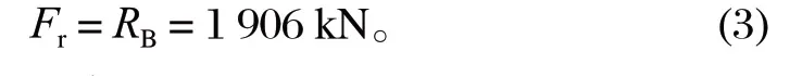 根據(jù)提升機受力、相關(guān)尺寸及提升系統(tǒng)參數(shù),可以得出:傳動側(cè)軸承處的支反力 RB=1 906 kN,且認(rèn)為支反力 RB 和徑向力 Fr 大小相同,即