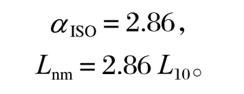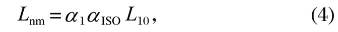 式中:Lnm 為修正額定壽命;α1 為可靠度修正系數(shù);αISO 為壽命修正系數(shù)。