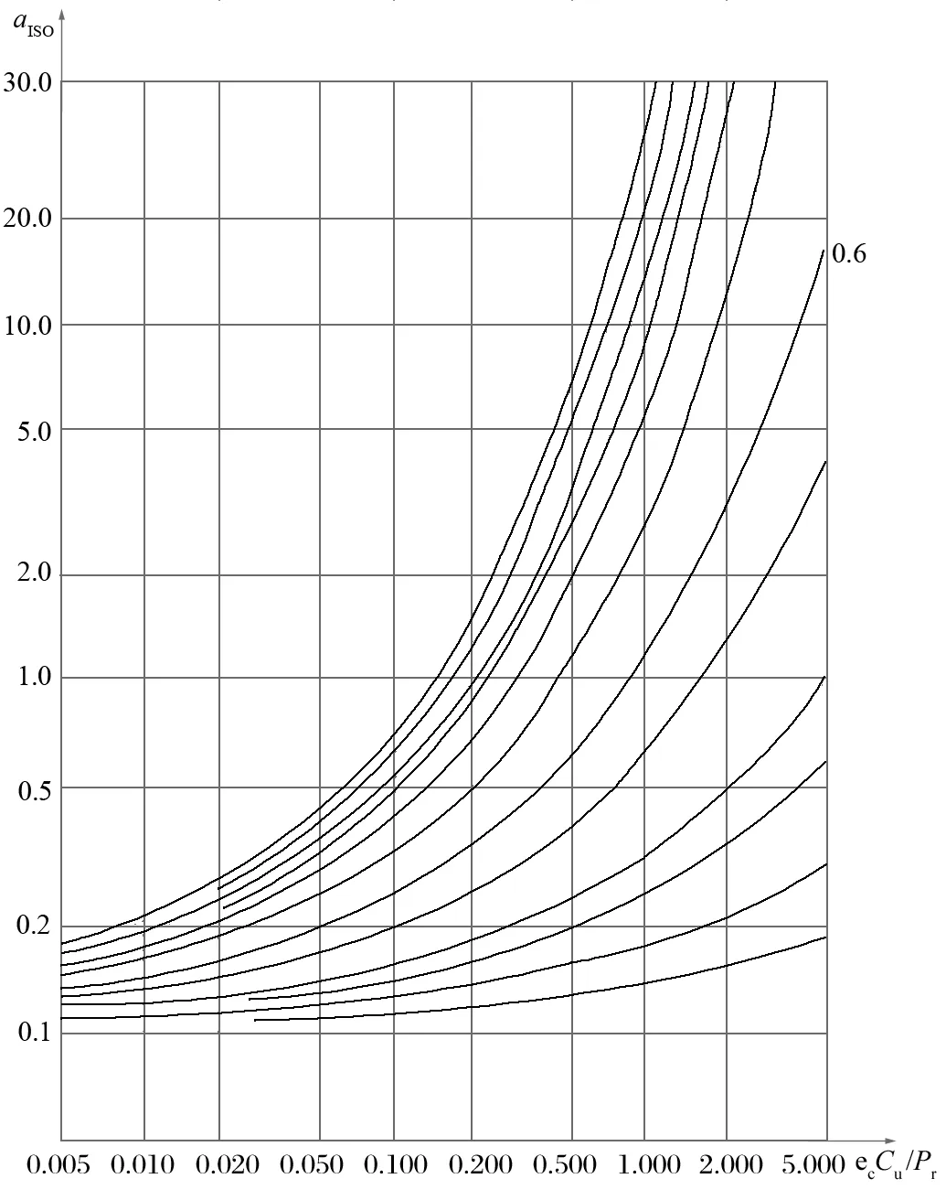 根據(jù)黏度比 k 和式 (7),經(jīng)查 GB/T 6391—2010/ISO 281:2007 中軸承的壽命修正系數(shù)(見圖6),可得
