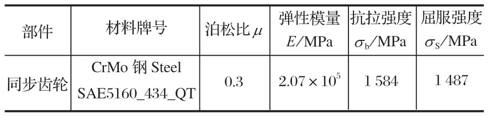 式中,各相關參數(shù)及其含義可由《機械設計手冊》查得。同步齒輪材料參數(shù)如表2所列。